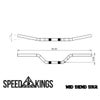ミッドベンドハンドルバー。 1インチ径サイズのハンドルです。 スピードキングサイクルのハンドルは、ローベンド、ミッドベンド、ハイベンド、と用途や体格に合わせ各種類がリリースされています。 「Speed Kings」のロゴが目立つ位置に刻印されてアクセントになっています。 電子制御スロットル用切り欠き加工及び、配線逃がし用のヘコミ、配線中通し用の穴あけ加工が施され、またクランプ部にはローレットが刻まれ、取り付けしやすい構造です。 ※ケーブルスロットル車に取り付けの際は、別途ハンドルバープラグ(0634-0331)が必要になります。