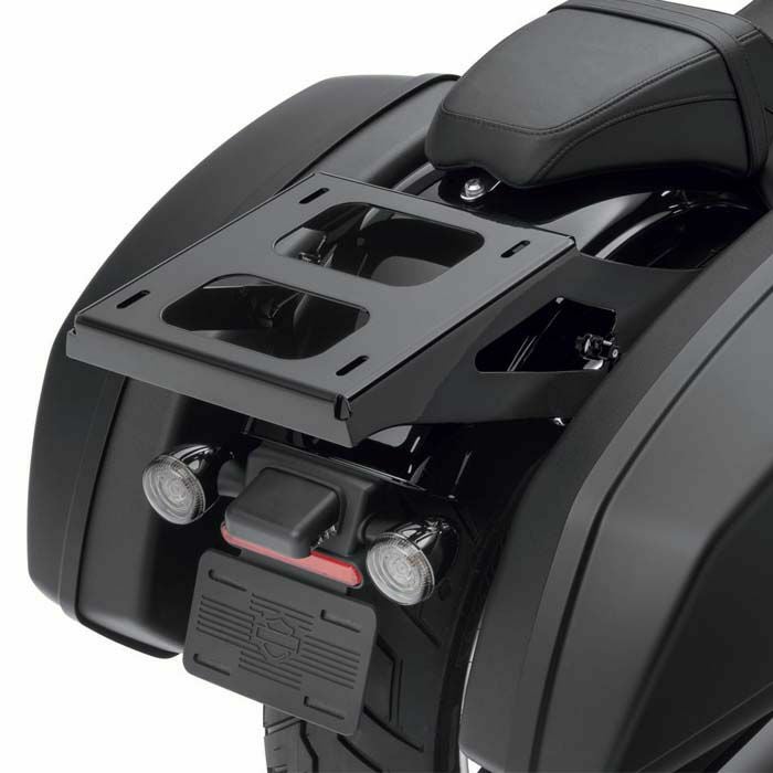 ツアーパックを装着するための、デタッチャブルマウントラック。 ツーアップシート装着車用。 ツアーパック位置は前後1インチ(2.5cm)調整可能なため、パッセンジャーのスペースを最大限に確保できます。 ※取付けには別売のドッキングハードウェア(52300645または52300646)が必要 相当キレイな状態です。 写真は実商品です。(写真3枚目は取り付けイメージです。) 程度:★★★★★