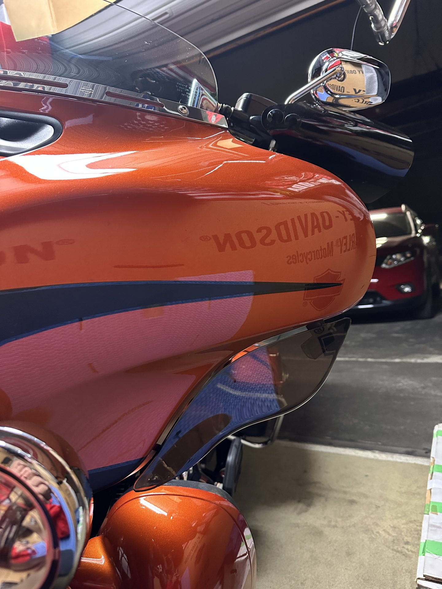 届いたのはXLサイズ。ローキン、ソフテイル用ならばサイズに疑問です。 まだ長さはジャストサイズ、天地方向は全く足りません。画像はスポーツグライドですが、フロントカウル付けた状態ではフロント周りはタイヤの半分もカバー出来ま […]