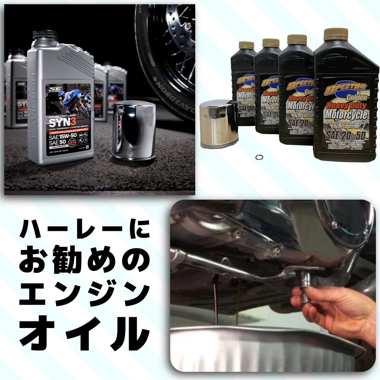 ハーレーは別体式のオイルタンクを持ち、エンジンオイルを循環させている。 エンジンオイルの種類 エンジン・オイルには自然由来の鉱物油と、科学的に合成した化学合成オイル、そしてそれらをミックスした部分合成油がある。 •「鉱物 […]